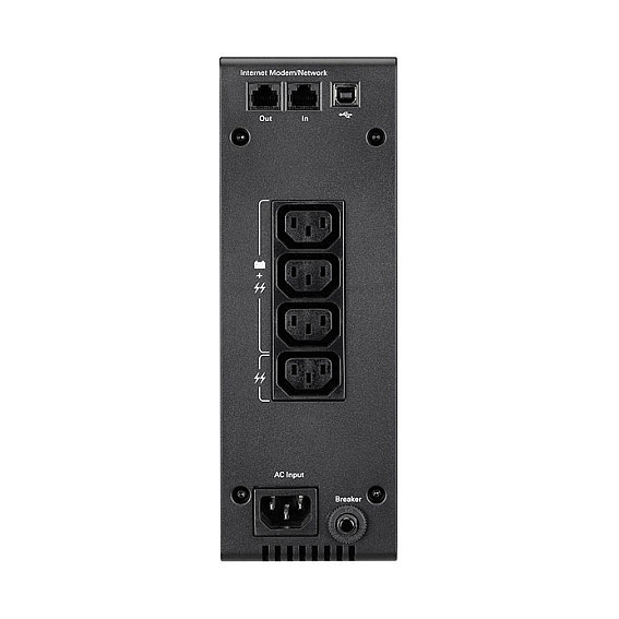 "Eaton 5S 550i. Output power capacity: 0.55 kVA, Output power: 330 W, Input operation voltage (min): 175 V. AC outlet types: C13 coupler, Power plug: C14 coupler, AC outlets quantity: 4 AC outlet(s). Battery technology: Sealed Lead Acid (VRLA), Typical backup time at half load: 10 min. Form factor: Tower, Product colour: Black. Safety: IEC/EN 62040-1, IEC/EN 62040 -2, CB, CE"\n"The Eaton 5S UPS provides cost-effective line-interactive backup power and voltage regulation for small and medium businesses with workstations, desktop PCs, telephone equipment and POS applications. With its compact form factor, the 5S UPS can be utilized as a standalone tower or under a computer monitor."
