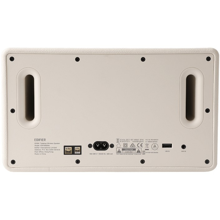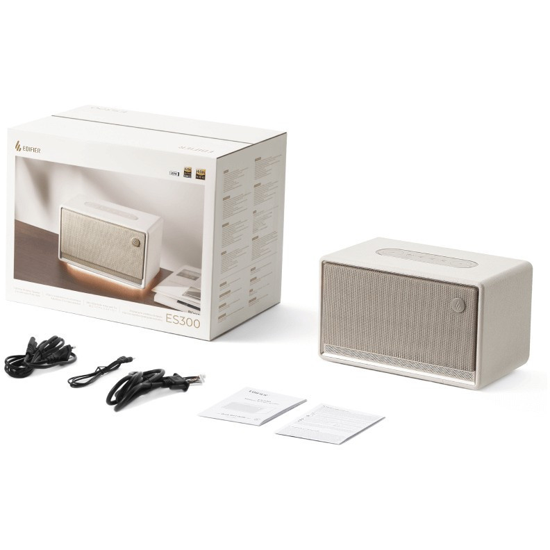 "Edifier ES300. Speaker type: 2-way. RMS rated power: 60 W, Frequency range: 56 - 40000 Hz, Signal-to-Noise Ratio (SNR): 85 dB. Connectivity technology: Wireless, Bluetooth profiles: LDAC, SBC, USB connector type: USB Type-A. Product type: Party speaker, Product colour: White, Volume control: Rotary. Recommended usage: Universal"\n"Fashion Design