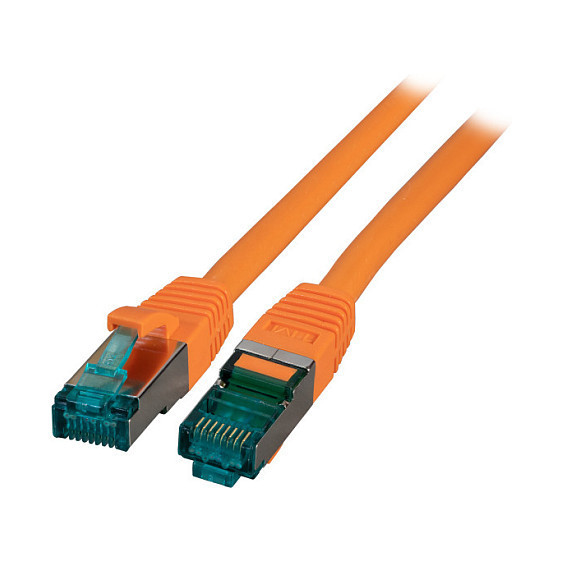 "EFB Elektronik MK6001.0,15O. Cable length: 0.15 m, Cable standard: Cat6a, Cable shielding: S/FTP (S-STP), Connector 1: RJ-45, Connector 2: RJ-45, Connector contacts plating: Gold, Product colour: Orange"\n"The shielded Cat.6A RJ45 patch cable with ensures excellent performance for 10 Gigabit Ethernet applications. The moulded grommet captivates with its slim design and thus simplifies the insertion process in cramped conditions."