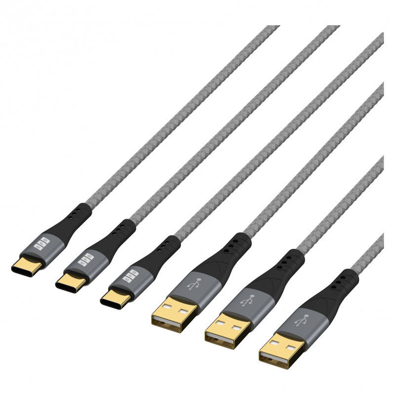 "EFB Elektronik USB-AC-00008. Cable length: 2 m. Connector 1: USB A, Connector 2: USB C, USB version: USB 2.0, Maximum data transfer rate: 0.48 Gbit/s, Connector contacts plating: Gold, Product colour: Black, Grey"\n"USB-A to USB Type-C Charging Cable Set – 60W, Textile Sheath, 3 x 2m