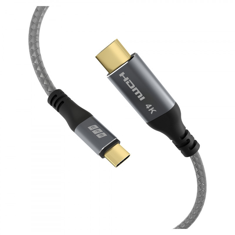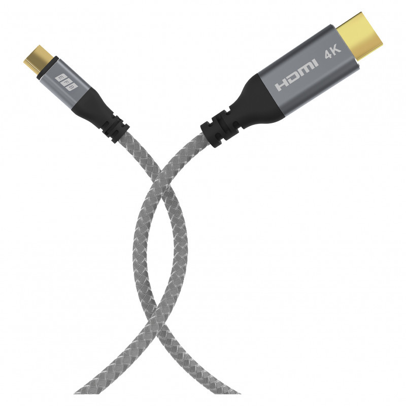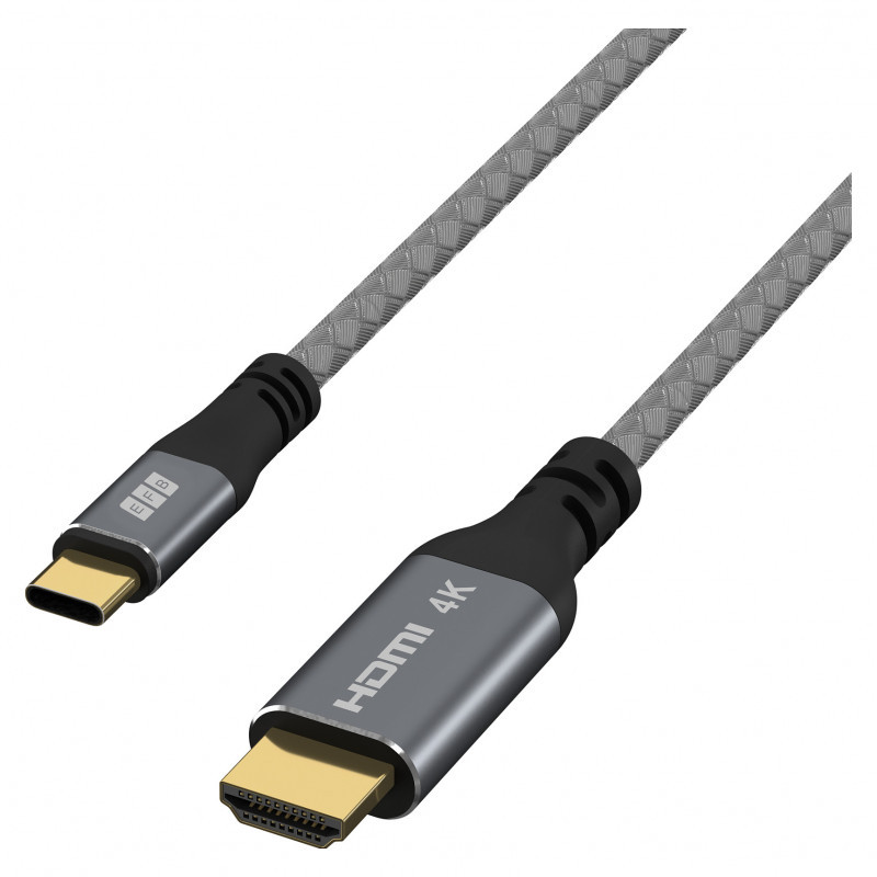 This USB-C to HDMI cable delivers clean, stable 4K@30Hz video output from modern devices to HDMI displays. Designed for professionals, it features a space-grey braided jacket, gold-plated connectors in an aluminum housing, and fully plastic-free packaging. Ideal for IT integrators, conference environments, and digital signage projects."