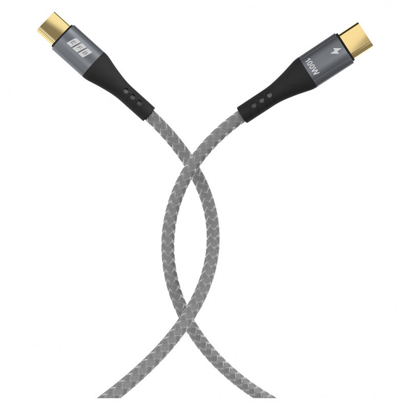 "EFB Elektronik USB-CC-00002. Cable length: 1 m. Connector 1: USB C, Connector 2: USB C, USB version: USB 2.0, Maximum data transfer rate: 0.48 Gbit/s, Connector contacts plating: Gold, Product colour: Black, Grey"\n"USB Type-C to USB Type-C Charging Cable – 100W Power, E-Marker, Textile Braid, 0.5–3m
