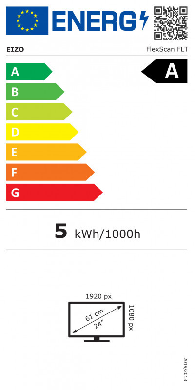 "EIZO FlexScan FLT. Display diagonal: 60.5 cm (23.8""), Display resolution: 1920 x 1080 pixels, HD type: Full HD, Display technology: LCD, Response time: 5 ms, Native aspect ratio: 16:9, Viewing angle, horizontal: 178°, Viewing angle, vertical: 178°. Built-in USB hub. VESA mounting. Product colour: Black"\n"The FlexScan FLT is EIZO's most sustainable monitor with Class A rank on the European energy label. Thanks to a particularly energy-saving LCD panel and unique energy-saving technologies, the typical power consumption is just 6 watts. With its EcoView features, the 23.8-inch monitor with Full HD resolution can even fall below this value. The FLT displays information about the current power consumption on demand. But it's not just in operation that the monitor scores in terms of sustainability. Its housing is made from 95% recycled plastic, which reduces waste, conserves resources and promotes the reuse of materials. The packaging is also made from recycled materials. At the same time, the packaging size has been reduced, which reduces greenhouse gas emissions during transportation by increasing charging efficiency. The monitor's USB-C connectivity enables a laptop to be connected with just one cable and, in addition to video and USB signals, also transmits a power supply of up to 60 watts. The FLT itself can also draw its power supply from a computer or monitor in reverse, e.g. as part of a daisy chain, and then does not require a mains adapter. The standard swivel arm allows flexible and ergonomic positioning and allows the FLT to seamlessly blend into any modern workspace.