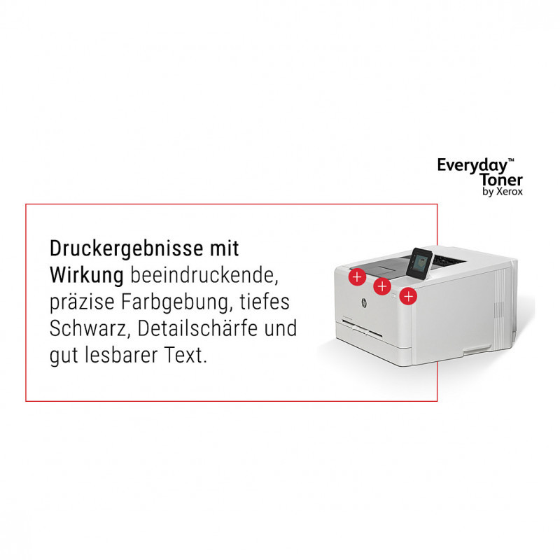 "Everyday™ Magenta Toner by compatible with HP 203X (CF543X), High capacity. Black toner page yield: 2500 pages, Colour toner page yield: 2500 pages, Printing colours: Magenta, Quantity per pack: 1 pc(s)"\n"Being environmentally responsible is simply the best way to do business, because it positively impacts the health of our planet, your company and your people. Everyday Remanufactured Toner by Xerox has the lowest carbon footprint than any single-use toner cartridge. Because you shouldn't have to choose between doing your part to reduce your eco-impact and your toner costs. And compatibility with the most popular printer brands means you can enjoy benchmark Xerox quality and stewardship no matter what kind of printer you have."