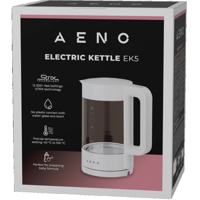 Water level indication 12 000+ fast boilings: Strix technology No plastic contact with water: glass eco-bowl Precise temperature setting: 40 ℃ to 100 ℃ Perfect for preparing baby formula Keep warm function Easy refill without opening the lid Optimal capacity: 1.7 L Stylish & functional LED illumination Ultra-quiet operation 360° power base Built-in limescale filter Cord winder: easy adjustment and storage Auto power-off: boil-dry & overheat protection |