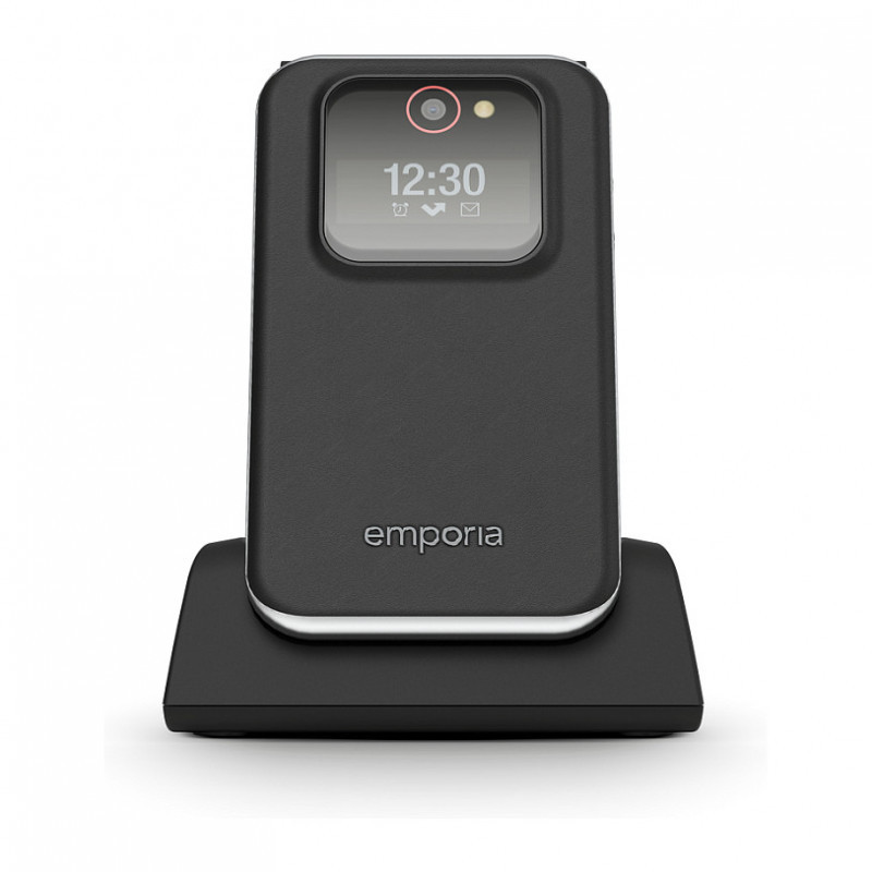 "Emporia JOY. Form factor: Clamshell. Display diagonal: 7.11 cm (2.8""), Display resolution: 240 x 320 pixels, External display. Rear camera resolution (numeric): 2 MP. Bluetooth. Battery technology: Lithium-Ion (Li-Ion), Battery capacity: 1300 mAh, Standby time (2G): 240 h. Weight: 113 g. Product colour: Black"\n"Product description