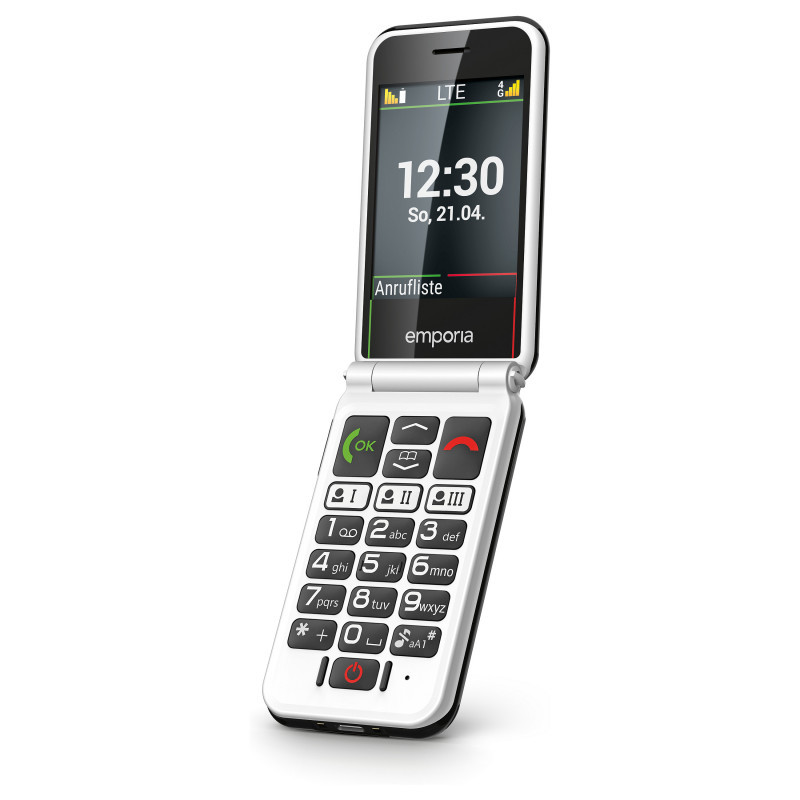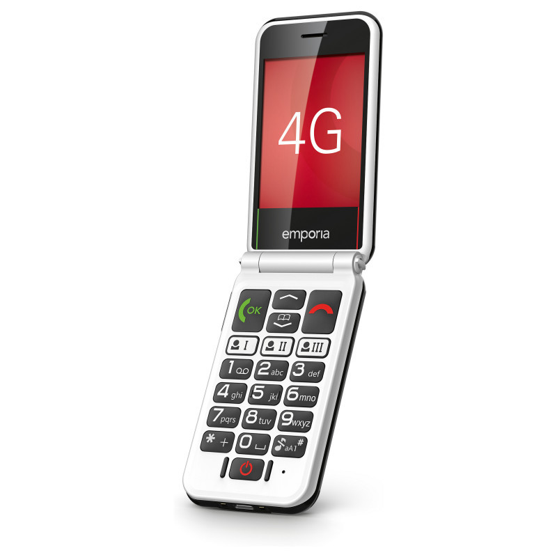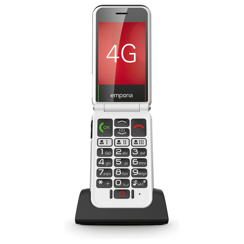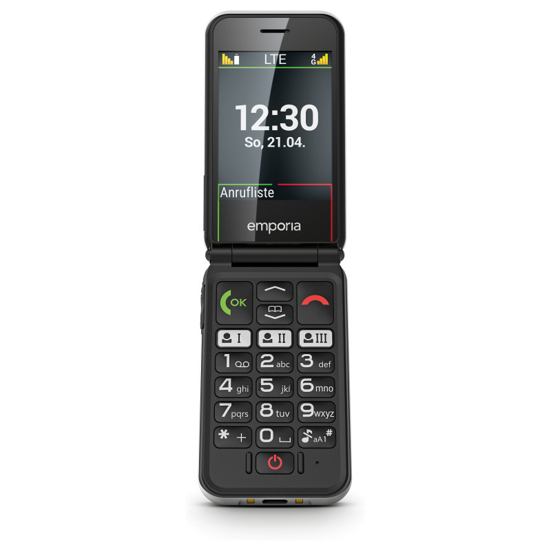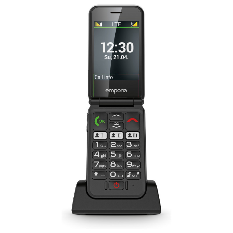 "Emporia SIMPLICITYglam.4G. Form factor: Flip. SIM card capability: Single SIM. Display diagonal: 7.11 cm (2.8""), Display resolution: 240 x 320 pixels. Bluetooth. Battery technology: Lithium-Ion (Li-Ion), Battery capacity: 1300 mAh, Standby time (2G): 260 h. Weight: 106 g. Product colour: Black"\n"Finding a simple cell phone for seniors without a contract isn't that easy these days, is it? Yes, it is! May we introduce the emporiaSIMPLICITYglam.4G. A perfect everyday companion that comes in a stylish design and has all the essential functions.