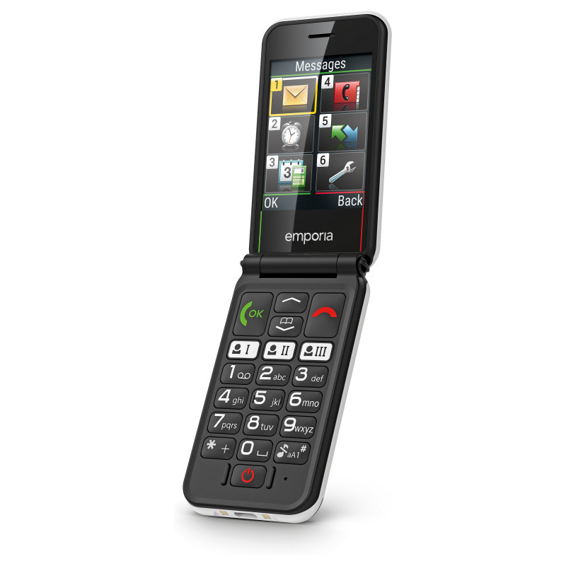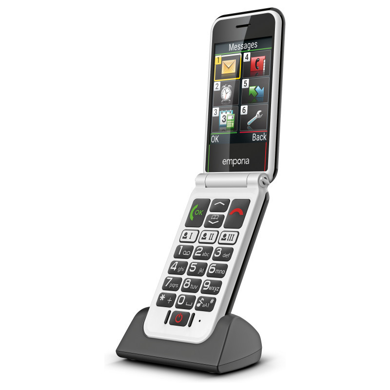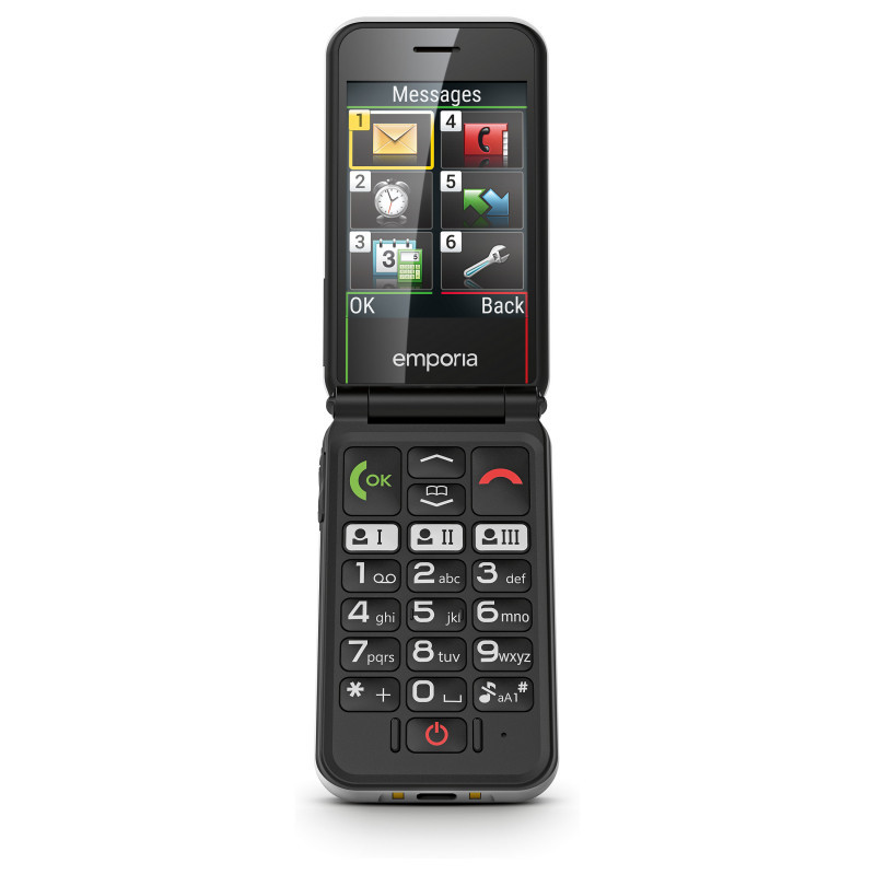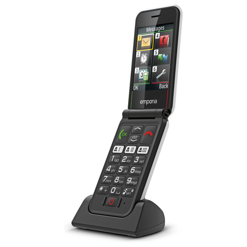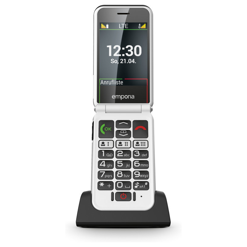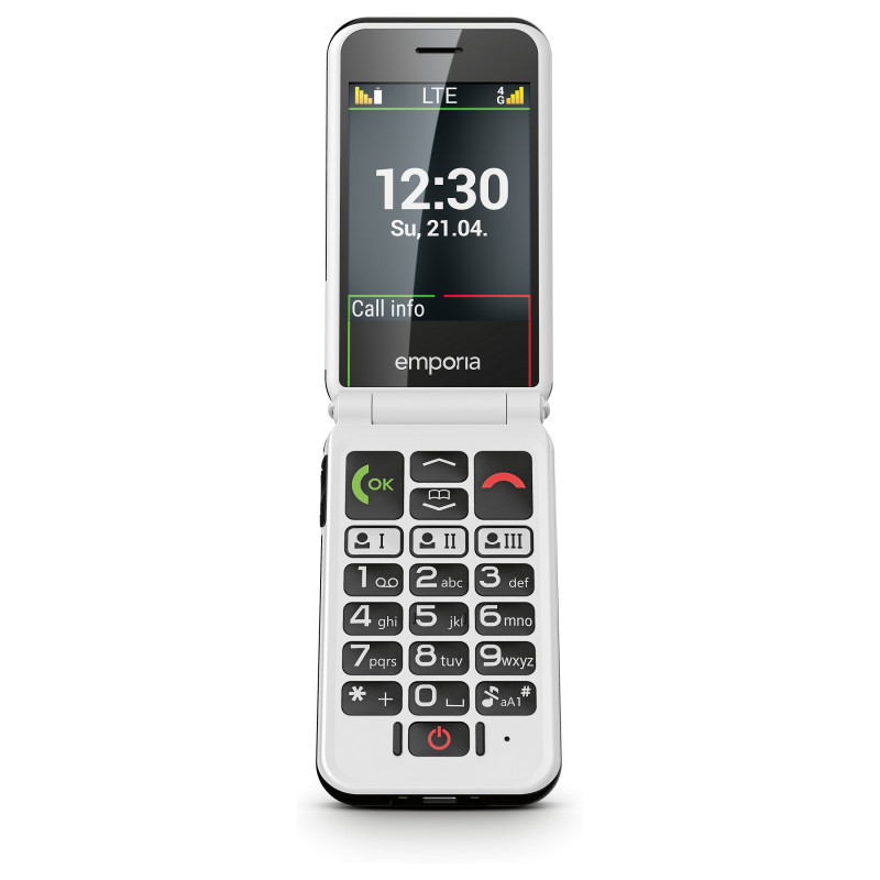 "Emporia SIMPLICITYglam.4G. Form factor: Flip. SIM card capability: Single SIM. Display diagonal: 7.11 cm (2.8""), Display resolution: 240 x 320 pixels. Bluetooth. Battery technology: Lithium-Ion (Li-Ion), Battery capacity: 1300 mAh, Standby time (2G): 260 h. Weight: 106 g. Product colour: Black"\n"Finding a simple cell phone for seniors without a contract isn't that easy these days, is it? Yes, it is! May we introduce the emporiaSIMPLICITYglam.4G. A perfect everyday companion that comes in a stylish design and has all the essential functions.