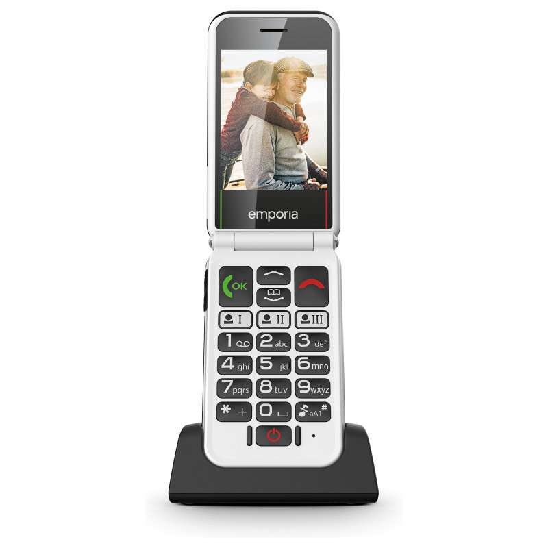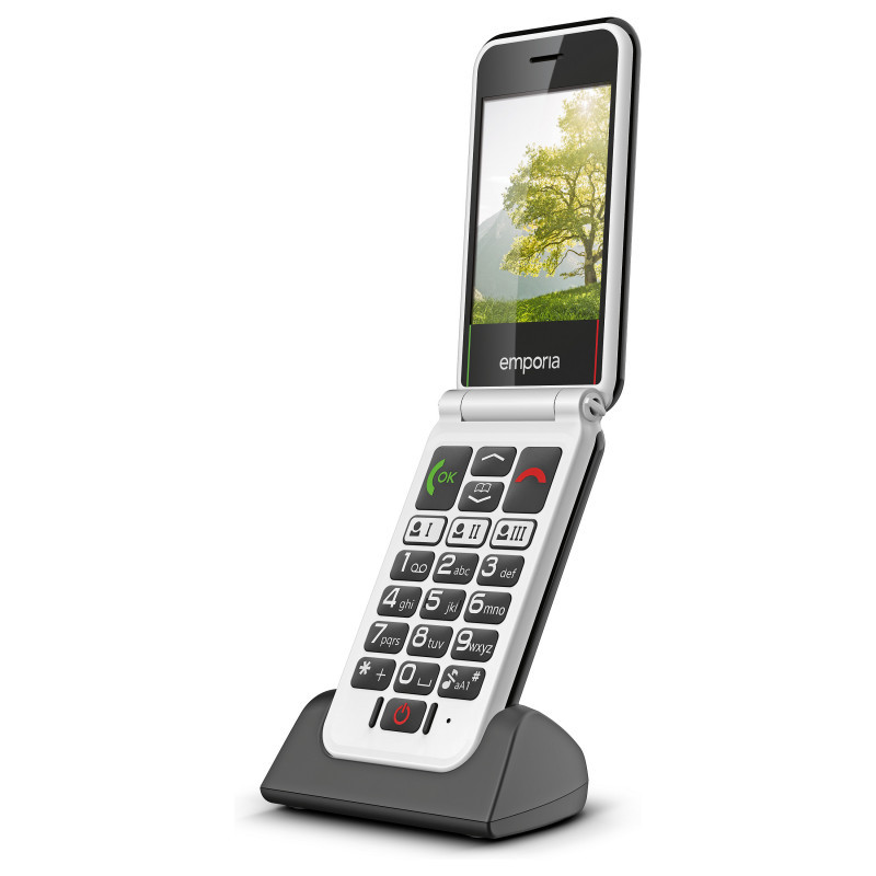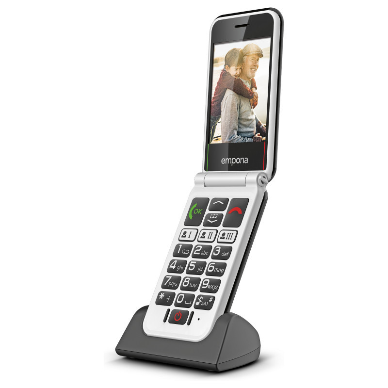This simple cell phone for seniors comes with a practical charging cradle, headphones, a replaceable battery and the operating instructions. And if you tip over your teacup while handling the pretty device, that's no problem either. This simple cell phone for seniors without a contract is also IP54-certified, meaning it's dust and splash-proof. Older people also appreciate what the name ""M4/T4"" means. This abbreviation indicates that the phone is particularly suitable for hearing aid users.