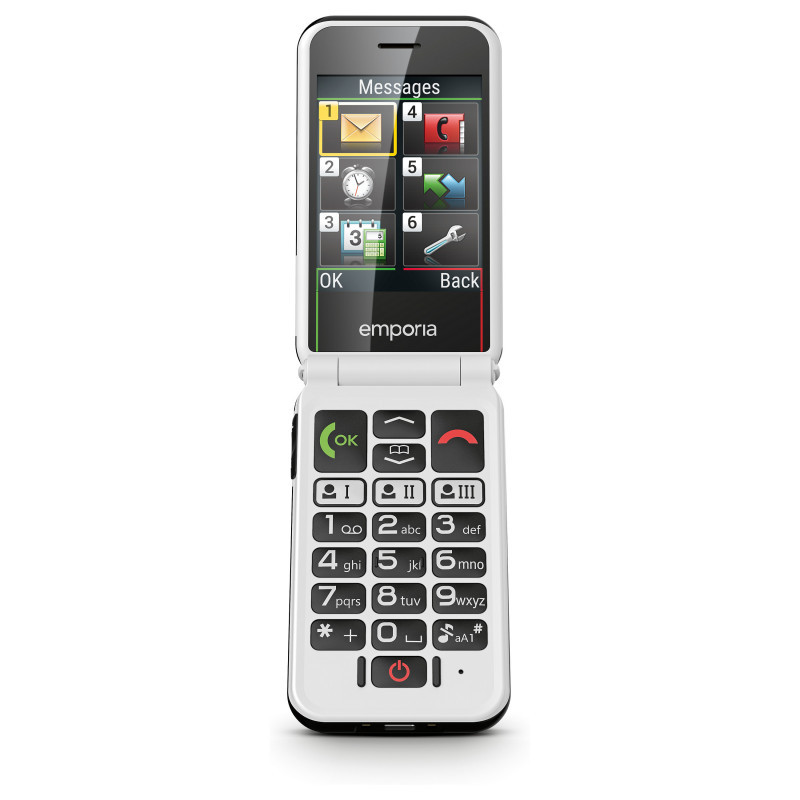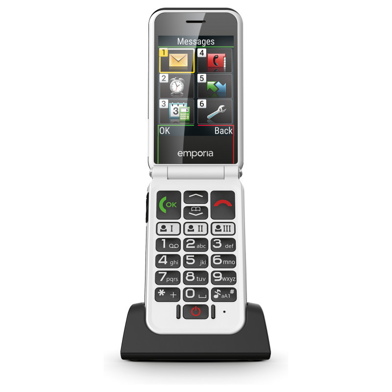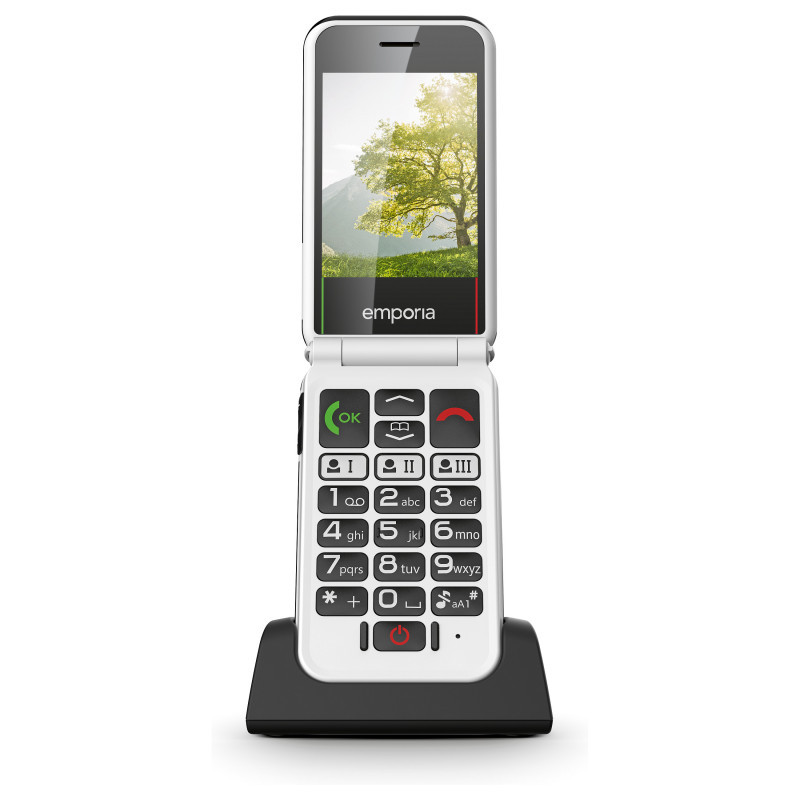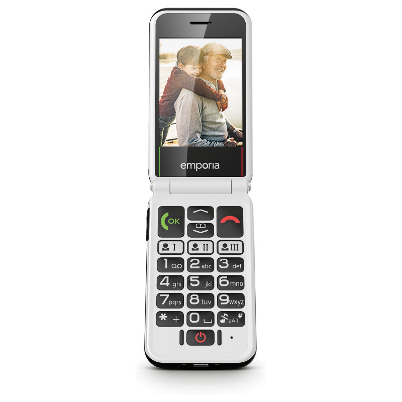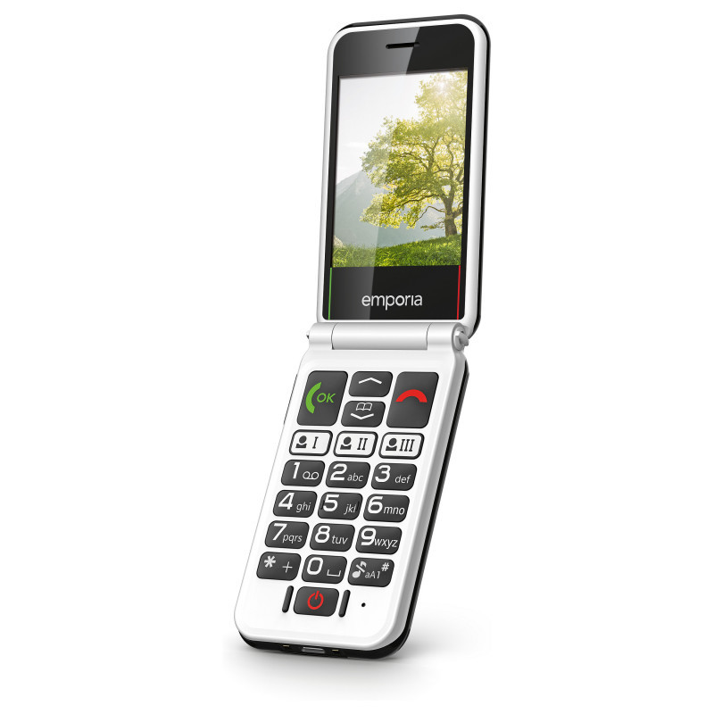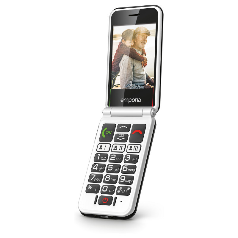 White, simple and high-quality - that's how the device looks from the outside. When opened, it shows off all its other advantages. This simple cell phone for seniors offers functions such as an alarm clock, vibration alarm, calendar, calculator or LED status lights for battery power, calls or SMS. The device is particularly popular with button lovers, because we have equipped it with extra-large buttons that are illuminated and raised and have an excellent pressure point. There are also speed dial buttons. Other highlights: an individually adjustable font size and a wide screen with easy-to-read font. On the back you will also find our patented emergency call button. In an emergency, you can get help quickly and easily - that is always possible.