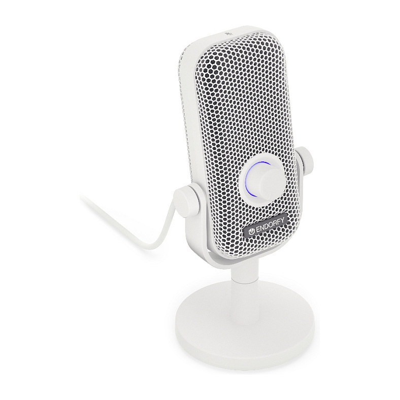 "ENDORFY Solum Voice S. Type: PC microphone, Microphone frequency: 30 - 18000 Hz, Bit rate: 24 bit. Connectivity technology: Wired, Device interface: USB/3.5 mm, USB connector type: USB Type-C. Product colour: White, Market segment: Consumer, Control type: Rotary, Touch. Power source: USB. Width: 74 mm, Depth: 74 mm, Height: 170 mm"\n"Stream, chat and record podcasts with the Solum Voice S Onyx White. The RGB-illuminated microphone takes up little space, providing you with room for vlogging, gaming and chatting with friends. It’s also compatible with ENDORFY microphone arms, so you can adjust it to the most comfortable position.