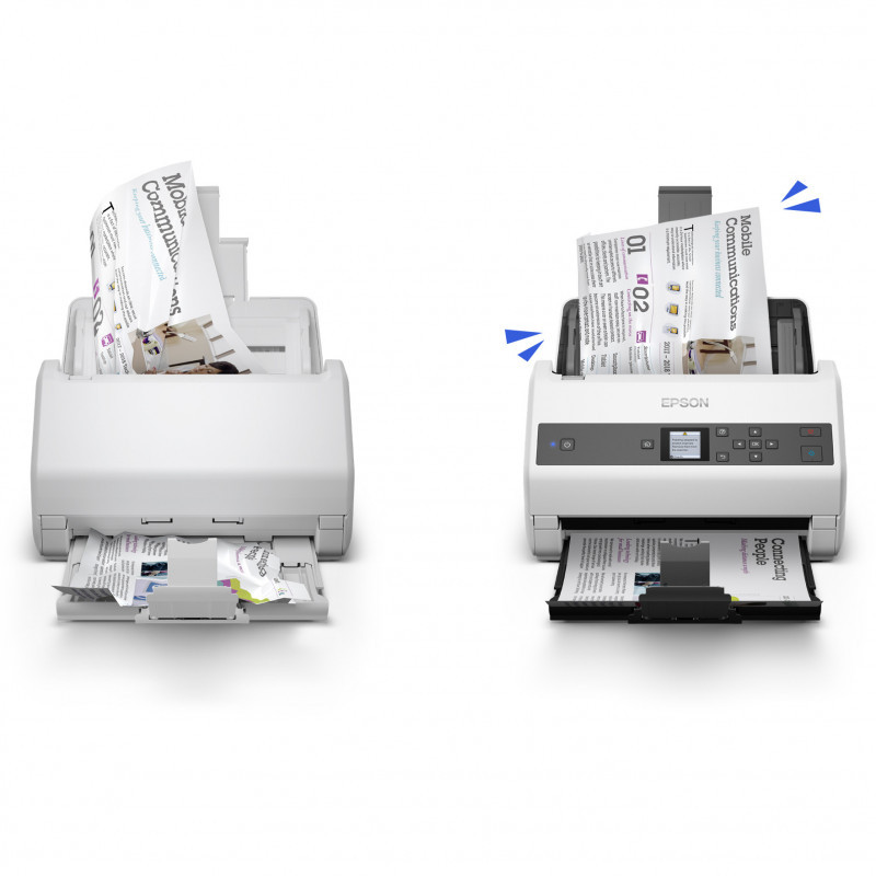 "Epson WorkForce DS-870. Optical scanning resolution: 600 x 600 DPI, Input colour depth: 30 bit, Output colour depth: 24 bit. Scanner type: Sheet-fed scanner, Product colour: Grey, White, Display: LCD. Sensor type: CIS, Daily duty cycle (max): 7000 pages, Scan file formats: JPEG, PDF, TIFF. Auto document feeder (ADF) input capacity: 100 sheets. Maximum ISO A-series paper size: A4, Scanning media types supported: Business Card, Plastic Card, Post Card(JPN), ISO A-series sizes (A0...A9): A3, A4, A5, A6"\n