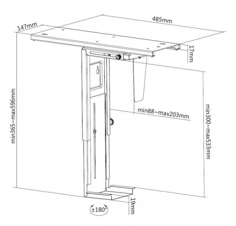 Equip 650892 procesoriaus laikiklis Po stalu montuojamas procesoriaus laikiklis Juoda
