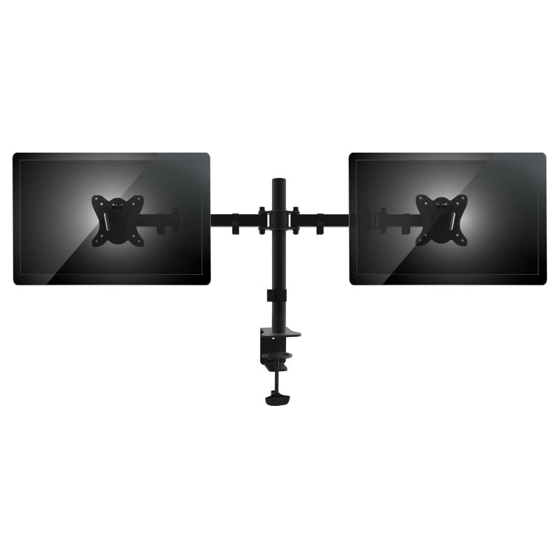 "Equip 13""-27"" Articulating Dual Monitor Desk Mount Bracket. Mounting: Clamp, Maximum weight capacity: 16 kg, Minimum screen size: 33 cm (13""), Maximum screen size: 68.6 cm (27""), Minimum VESA mount: 75 x 75 mm, Maximum VESA mount: 100 x 100 mm. Swivel angle range: -90 - 90°, Tilt angle range: -45 - 45°. Product colour: Black"\n"The equip® Monitor Desk Mount Bracket is a compact but sturdy product that ensures a reliable installation of your LCD/LED monitor. Follow the graphic guide included in the package, you can install your monitor on your own with ease.