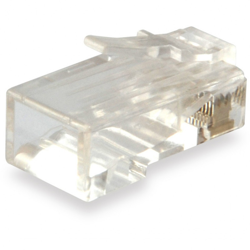 "Equip Cat.6 RJ45 Plug. Connector(s): RJ45, Product colour: Transparent, Material: Plastic. Compliance certificates: RoHS. Weight: 1 g, Width: 11.7 mm, Depth: 22.4 mm. Quantity per pack: 100 pc(s), Package width: 240 mm, Package depth: 180 mm"\n"The equip® Modular Plug is made of high-quality materials and a sturdy component for the RJ45 round cable deployment. "