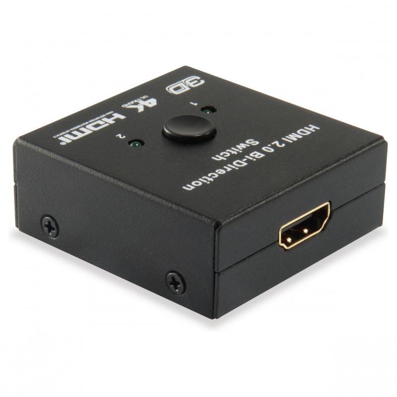 "Equip HDMI Bi-Direction Switch. Video port type: HDMI. Product colour: Black. Certification: CE. Width: 50 mm, Depth: 20 mm, Height: 50 mm. Package type: White Box, Package width: 62 mm, Package depth: 34 mm"\n"The equip HDMI Bi-directional Switcher/Splitter is very versatile as it can be used as either a 2 port switch or a 2 port splitter/selector. This means you have the option of using this with one host device (ie: Bluray Player, PS3, etc.) and have the signal sent to two displays (TV, Monitor, Projector, etc.), and then simply use the selector button to switch the signal back and forth between the displays. "