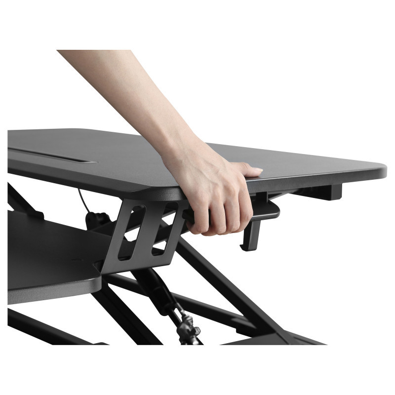 "Equip Ergonomic Sit/Stand Riser. Product colour: Black, Maximum weight capacity: 15 kg, Mounting type: Desk. Height adjustment range: 115 - 510 mm. Width: 800 mm, Depth: 580 mm, Weight: 10.5 kg. Package width: 885 mm, Package depth: 185 mm, Package height: 495 mm. Compliance certificates: RoHS"\n"The equip® ERGO 650840 can provide you quickly and easily adjust your desk into an ergonomic standing workstation. Simply change the height rise the stand from between 11 to 51cm, Thanks to the squeeze handle with gas spring, this is done smoothly and effortlessly. With the built-in slot holder and lower keyboard/mouse table, more space is gained for equipment and office items. And allows you to enable a correct sitting/stand holder for working, as your cervical vertebra relieves