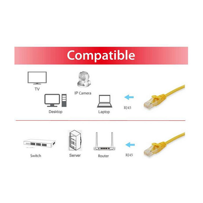"Equip Cat.6A S/FTP Patch Cable, Yellow, 25m. Cable length: 25 m, Cable standard: Cat6a, Cable shielding: S/FTP (S-STP), Connector 1: RJ-45, Connector 2: RJ-45, Data transfer rate: 10000 Mbit/s, Product colour: Yellow"\n"The equip® Cat.6A S/FTP Patch Cord is composed of preeminent materials and fully-examined to conform with industrial standards. Offering higher bandwidth and better signal-to-noise margin, the Cat.6A cable is able to deliver ultrahigh and error-free performance in the most demanding network environments, specially for 10G application"