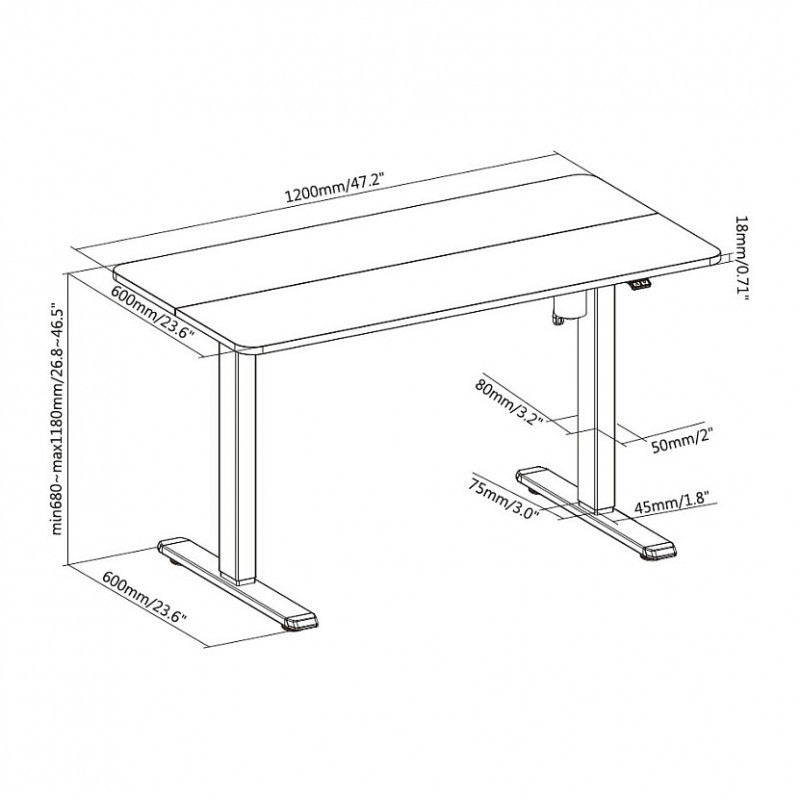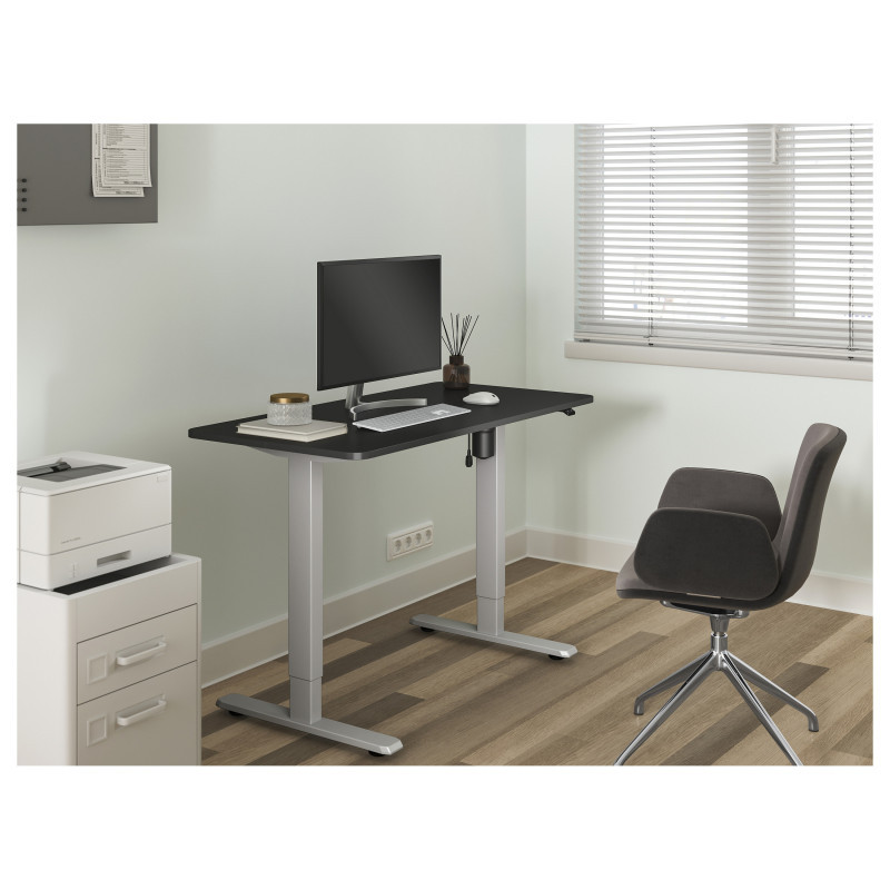 "Equip ERGO Electric Sit-Stand Desk Frame with Desktop, Grey. Type: Straight, Table top shape: Rectangular shape, Table top material: Plastic. Input voltage: 100 - 240 V, Power source type: AC. Width: 600 mm, Depth: 1180 mm, Height: 1200 mm. Package width: 385 mm, Package depth: 210 mm, Package height: 1295 mm. Country of origin: China"\n"""The equip® ERGO Electric Sit-Stand Desk Frame creates your own desk space that lets you stand up during the long workday with an electric height adjustable frame. Periodically standing throughout the day can help relieve tension on the neck, back, and shoulders, as well as increase blood flow and reduce stress. Enjoy being able to stand up in seconds with this sturdy frame featuring a motor lift system for smooth height transitions, telescopic height adjustment for ideal ergonomic viewing.