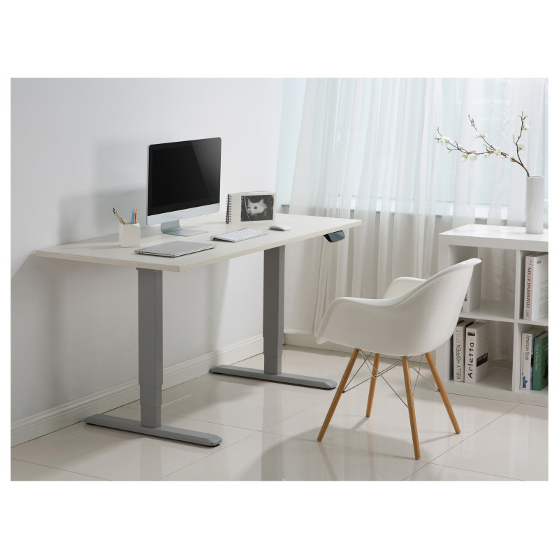 "Equip ERGO Electric Sit-Stand Desk Frame, Dual Motor, Grey. Maximum weight capacity: 100 kg, Height adjustment type: Electric, Maximum speed: 38 mm/sec. Minimum width: 100 cm, Maximum width: 170 cm, Depth: 620 mm. Package width: 295 mm, Package depth: 220 mm, Package height: 1105 mm. AC adapter input voltage: 100 - 240 V. Master (outer) case width: 295 mm, Master (outer) case length: 220 mm, Master (outer) case height: 1105 mm"\n"""The equip® ERGO Electric Sit-Stand Desk Frame creates your own desk space that lets you stand up during the long workday with an electric height adjustable frame. Periodically standing throughout the day can help relieve tension on the neck, back, and shoulders, as well as increase blood flow and reduce stress. Enjoy being able to stand up in seconds with this sturdy frame featuring a dual motor lift system for smooth height transitions, telescopic height adjustment for ideal ergonomic viewing, touch control for customizable settings and convenience, and solid leg support for desk surfaces weighing up to 275 pounds (125Kg)