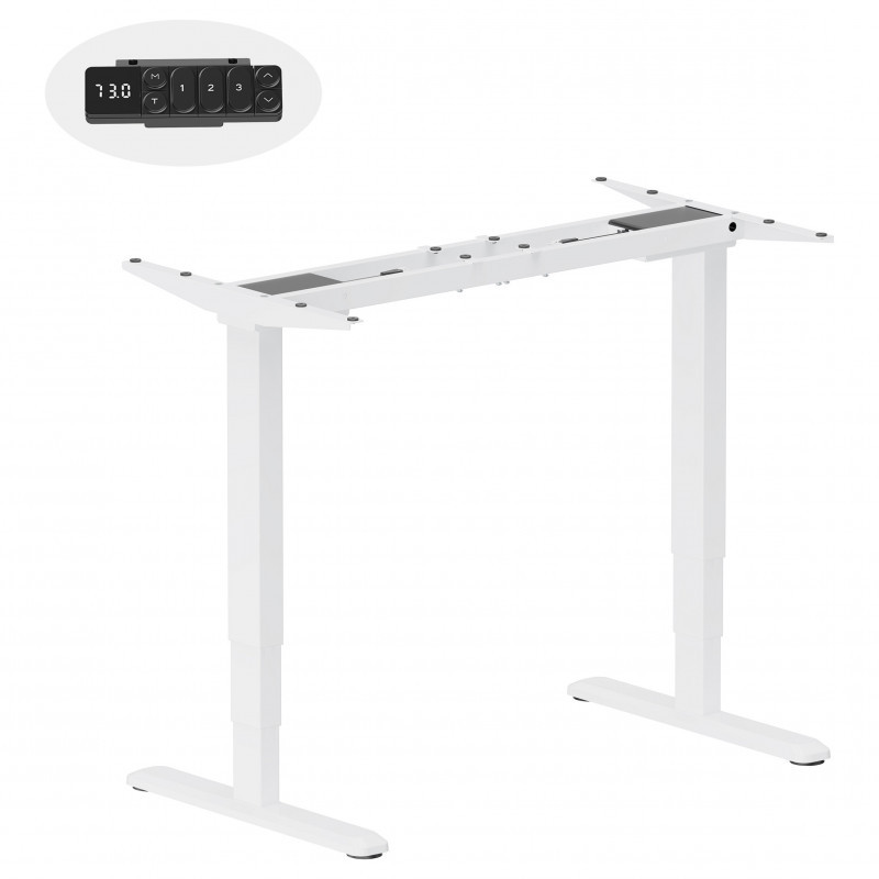 "Equip ERGO Electric Sit-Stand Desk Frame, White. Maximum weight capacity: 125 kg, Height adjustment type: Electric, Number of legs: 2 leg(s). Minimum width: 100 cm, Maximum width: 170 cm, Depth: 600 mm. Package width: 980 mm, Package depth: 305 mm, Package height: 145 mm. AC adapter input voltage: 100 - 240 V. Master (outer) case width: 980 mm, Master (outer) case length: 305 mm, Master (outer) case height: 145 mm"\n"The equip ERGO Electric Sit-Stand Desk Frame creates your own desk space that lets you stand up during the long workday with an electric height adjustable frame. Periodically standing throughout the day can help relieve tension on the neck, back, and shoulders, as well as increase blood flow and reduce stress. Enjoy being able to stand up in seconds with this sturdy frame featuring a dual motor lift system for smooth height transitions, telescopic height adjustment for ideal ergonomic viewing, touch control for customizable settings and convenience, and solid leg support for desk surfaces weighing up to 275 pounds (125Kg)"