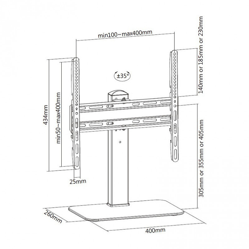 "Equip 32""-55"" Universal TV Stands. Maximum weight capacity: 40 kg, Minimum screen size: 81.3 cm (32""), Maximum screen size: 139.7 cm (55""), Minimum VESA mount: 100 x 200 mm, Maximum VESA mount: 400 x 400 mm. Height adjustment range: 260 - 450 mm. Product colour: Black"\n"""The equip® 650611 height adjustable TV/LCD Desk Mount Bracket is a compact but sturdy product that ensures a reliable installation of your TV monitor. No holes or complicated assembly required can be quick to assemble.