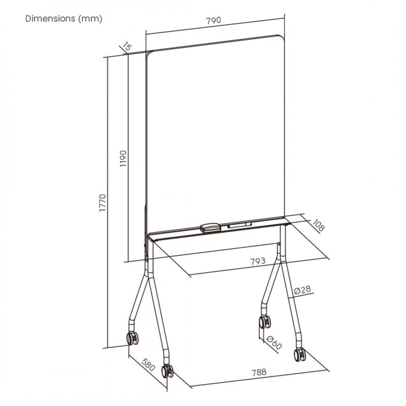 Ergo Office mobilioji lentelė, vertikali, balta, vienpusė, su lentynėle, lentelės matmenys 1190x790 mm, ER-305