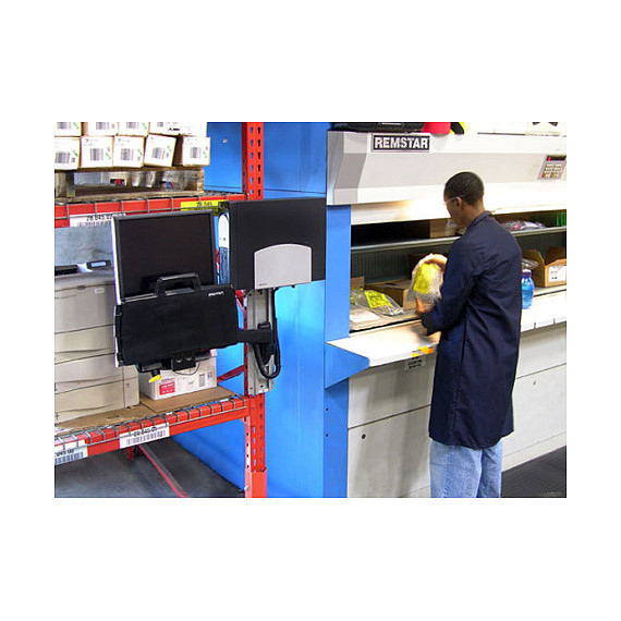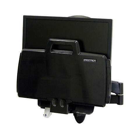 The 200 Combo holds a monitor, bar-code scanner, keyboard, wrist rest and mouse on the same arm. Arm extends and retracts; fold back out of the way when not in use. A unique cable management system conceals and organizes cords, making cleaning a snap!