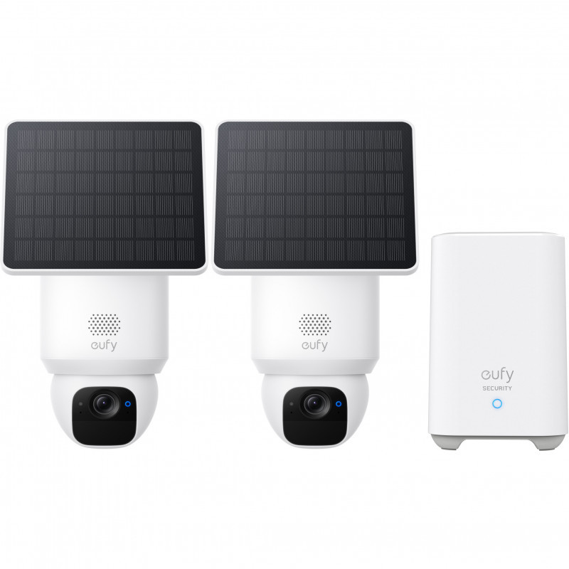 "Eufy SoloCam E30 (2-Pack) + Homebase 2. Type: IP security camera, Placement supported: Outdoor, Connectivity technology: Wireless. Mounting type: Wall, Product colour: White, Form factor: Dome. Field of view (FOV) angle: 360°, Tilt angle range: 0 - 70°, Pan range: 0 - 360°. LED type: IR. Maximum resolution: 2048 x 1080 pixels"\n