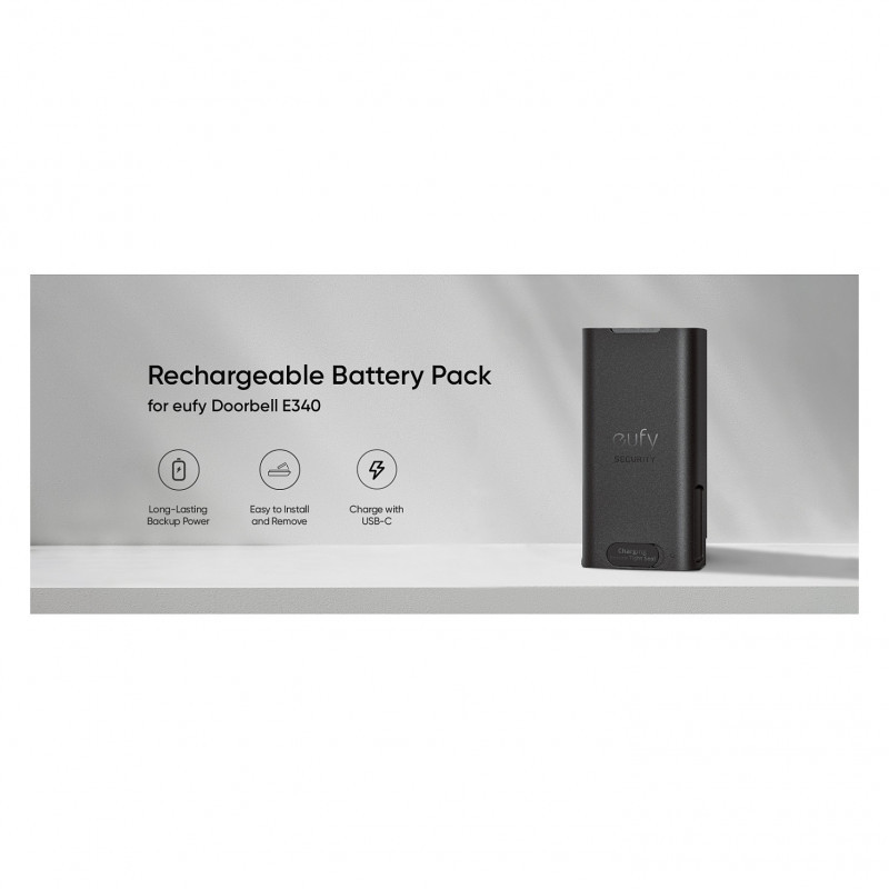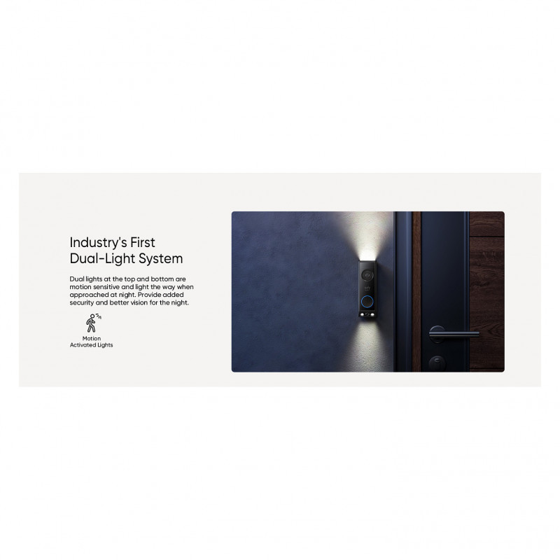 "Eufy E340 2K Dual Cameras Smart Video Doorbell with Chime. Type: IP security camera, Placement supported: Outdoor, Connectivity technology: Wireless. Mounting type: Wall, Product colour: Black, Form factor: Box. Field of view (FOV) angle: 160°. Supported video modes: 1080p, 1536p. HDD capacity: 8 GB"\n"Get crystal-clear 2K HD resolution with dual cameras for a complete view of your doorstep. The front-facing camera captures your visitors in sharp detail, while the downward-facing camera provides a clear view of the ground and packages, so nothing goes unseen.