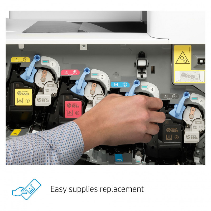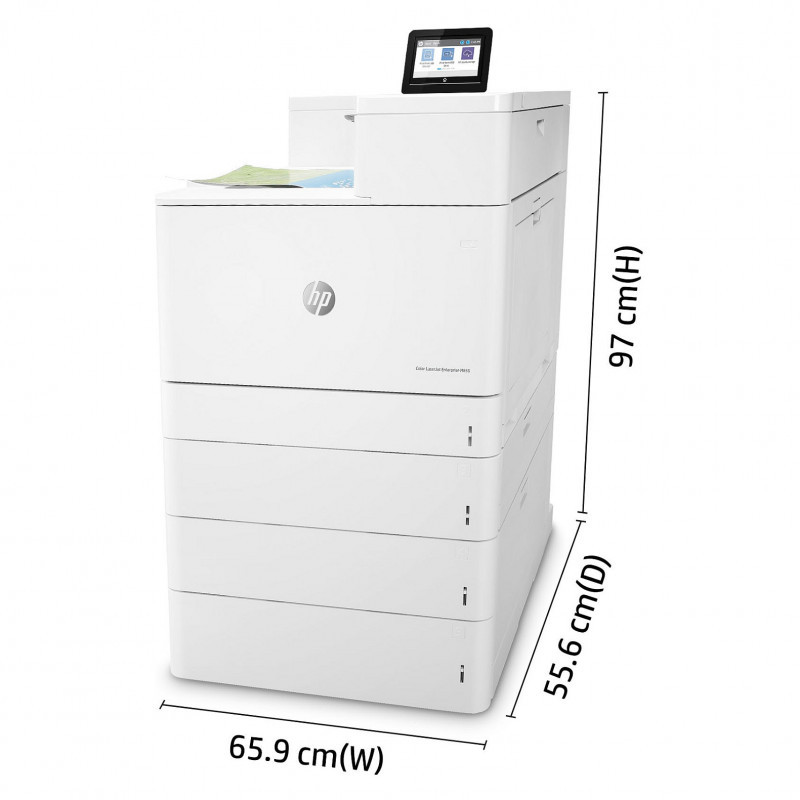 "HP Color LaserJet Enterprise M856dn. Print technology: Laser, Colour. Number of print cartridges: 4, Maximum duty cycle: 250000 pages per month. Maximum resolution: 1200 x 1200 DPI. Maximum ISO A-series paper size: A3. Print speed (black, normal quality, A4/US Letter): 56 ppm, Duplex printing. Display: CGD. Network ready, Wi-Fi. Product colour: White"\n" Print phenomenal colour while maximising uptime – now with original HP JetIntelligence toner technology. Expect consistently fast output, brilliant prints, and the world’s strongest security.[1]