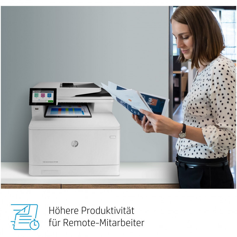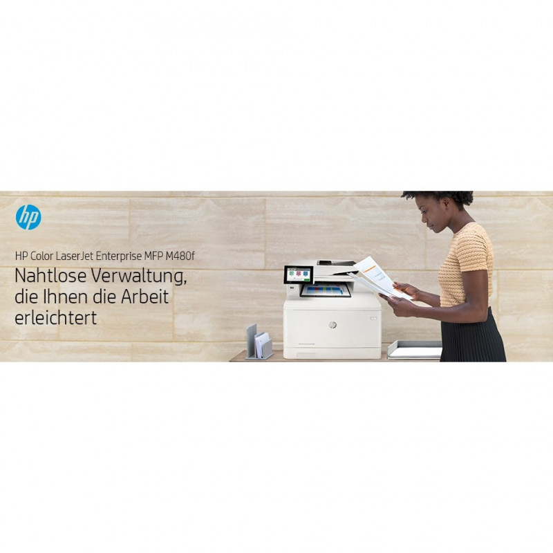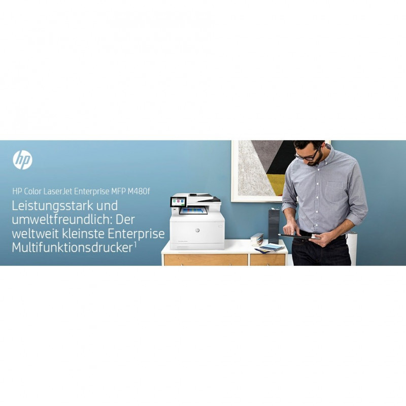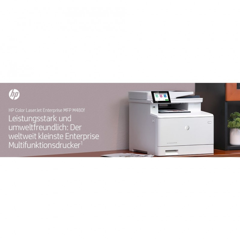 "HP Color LaserJet Enterprise MFP M480f. Print technology: Laser, Printing: Colour printing, Maximum resolution: 600 x 600 DPI, Print speed (colour, normal quality, A4/US Letter): 27 ppm. Copying: Colour copying, Maximum copy resolution: 600 x 600 DPI. Scanning: Colour scanning, Optical scanning resolution: 600 x 600 DPI. Faxing: Colour faxing. Duplex functions: Print, Copy, Scan. Maximum ISO A-series paper size: A4. Direct printing. Product colour: White, Black"\n" HP’s entry-level Enterprise-class Color MFP with speeds up to 28 ppm[9] and strongest security.[1]