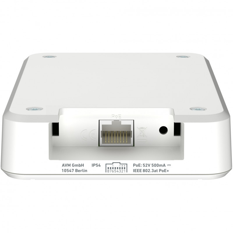 The FRITZ!Repeater 1610 Outdoor is powered using Power over Ethernet (PoE+). This way the extender can be installed flexibly, for example in hallways or secluded rooms.