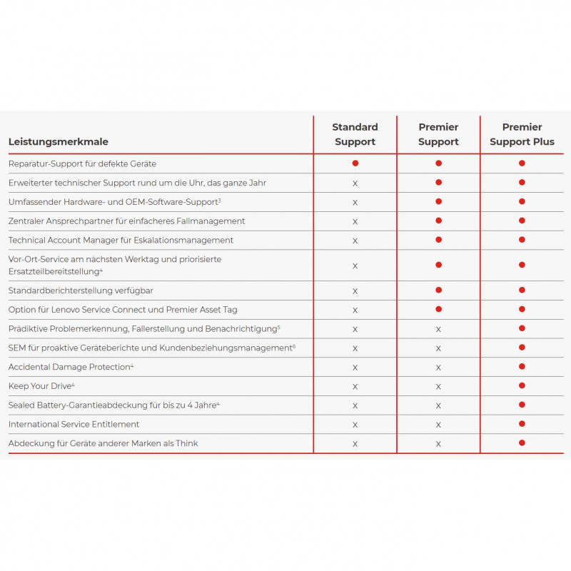 "Lenovo Premier Support Plus Upgrade - Extended service agreement - parts and labour (for system with 3 years on-site warranty) - 4 years - on-site - for ThinkCentre M90, M900, M90a Gen 2, M90a Gen 3, M90a Pro Gen 3, M910, M920z AIO, M93, X1. Number of years: 4 year(s), Type: On-site"\n"Premier Support Plus