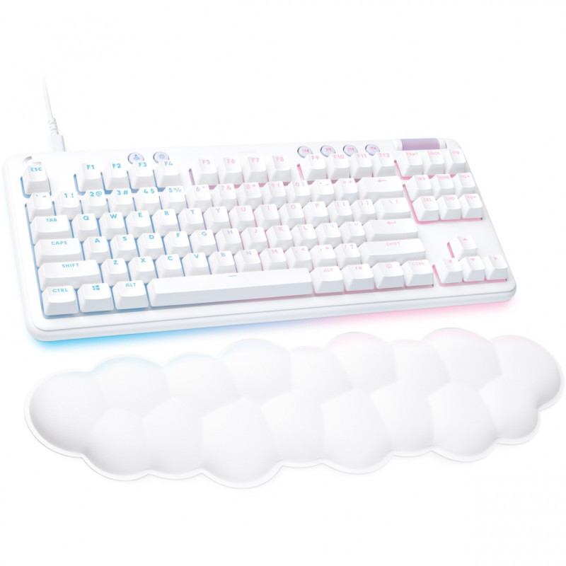 "Logitech G G713 Gaming Keyboard. Keyboard form factor: Tenkeyless (80 - 87%). Keyboard style: Straight. Connectivity technology: Wired, Device interface: USB, Keyboard key switch: Mechanical, Keyboard layout: QWERTY, Keyboard number of keys: 87. Backlight type: RGB LED, Wrist rest. Cable length: 1.8 m. Recommended usage: Gaming. Product colour: White"\n