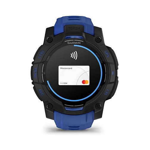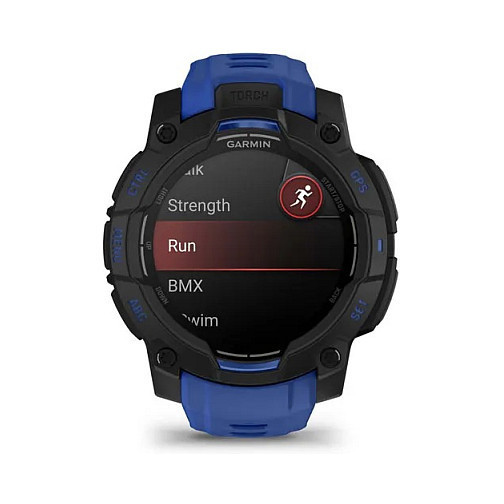 "Garmin Instinct 3. Display diagonal: 3.05 cm (1.2""), Display technology: AMOLED, Display resolution: 390 x 390 pixels. GPS (satellite). Weight: 53 g. Band material: Silicone, Band colour: Black, Blue"\n"TOUGH IT OUT
