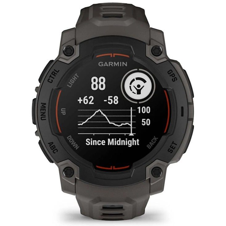 Navigate your next trail with an altimeter, barometer and 3-axis electronic compass.