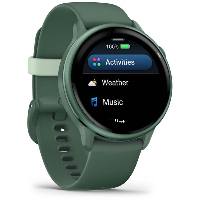"Garmin vívoactive 6. Display diagonal: 3.05 cm (1.2""), Display technology: AMOLED, Display resolution: 390 x 390 pixels, Touchscreen. Flash memory: 8 GB. Wi-Fi. GPS (satellite). Weight: 23 g. Band material: Silicone, Band colour: Green, Band size: One Size"\n"vívoactive® 6