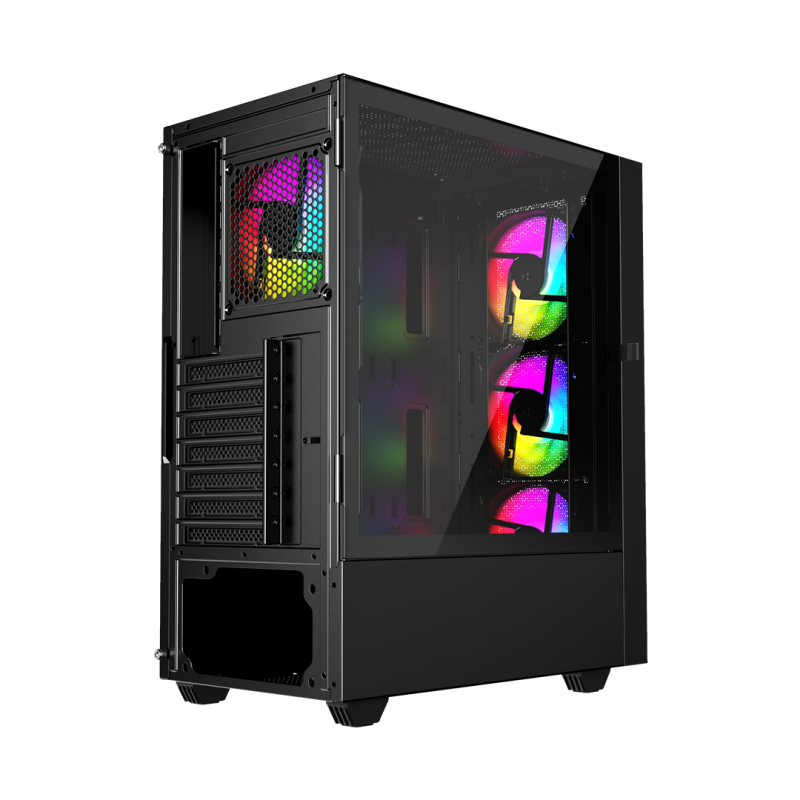 Gembird Fornax 4000 ARGB žaidimų ATX kompiuterio dėklas, Midi Tower, apšvietimas, juodas