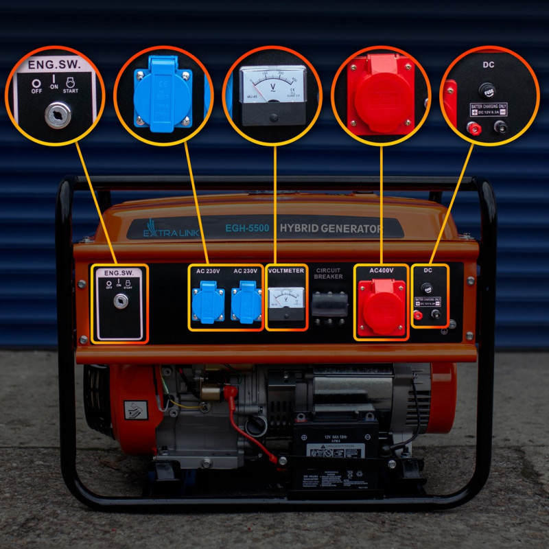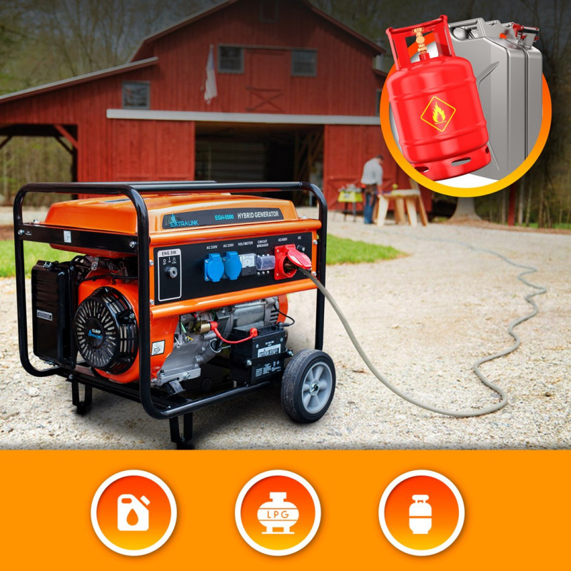 Extralink EX.30370 variklis-generatorius 5000 W 25 L Gamtinės dujos, Suskystintos benzino dujos (LPG), Benzinas Juoda, Oranžinė