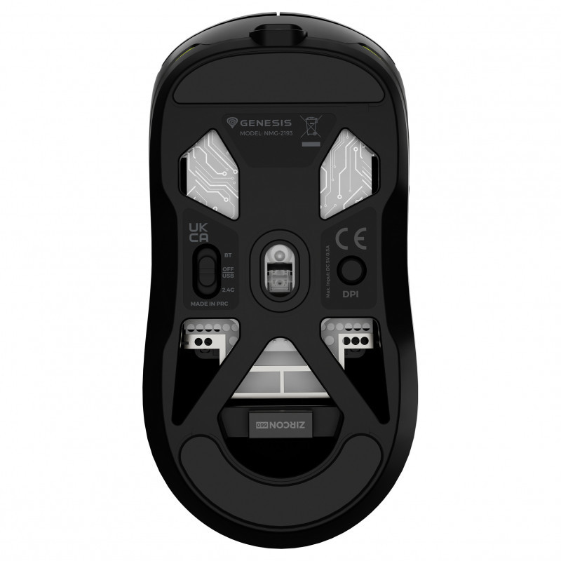 "GENESIS NMG-2193. Form factor: Ambidextrous. Movement detection technology: Optical, Device interface: Bluetooth + USB Type-C, Movement resolution: 26000 DPI, Buttons quantity: 6, Scroll type: Ring, Acceleration (max): 50 G. Power source: Batteries/Cable. Product colour: Black"\n"Triple communication mode, one of the best optical sensors and an even lighter weight of just 57 grams, and that's not all. Here is the GENESIS Zircon 660 Pro, which offers even more. Whether you're a novice gamer or an advanced e-sports gaming fan, the GENESIS Zircon 660 Pro offers reliability, comfort and top-of-the-line features to give you a real edge.