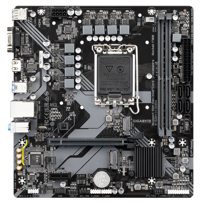 Gigabyte B550M DS3H R2 | Processor family AMD | Processor socket AM4 | DDR4 DIMM | Supported hard disk drive interfaces SATA, M.2 | Number of SATA connectors 4