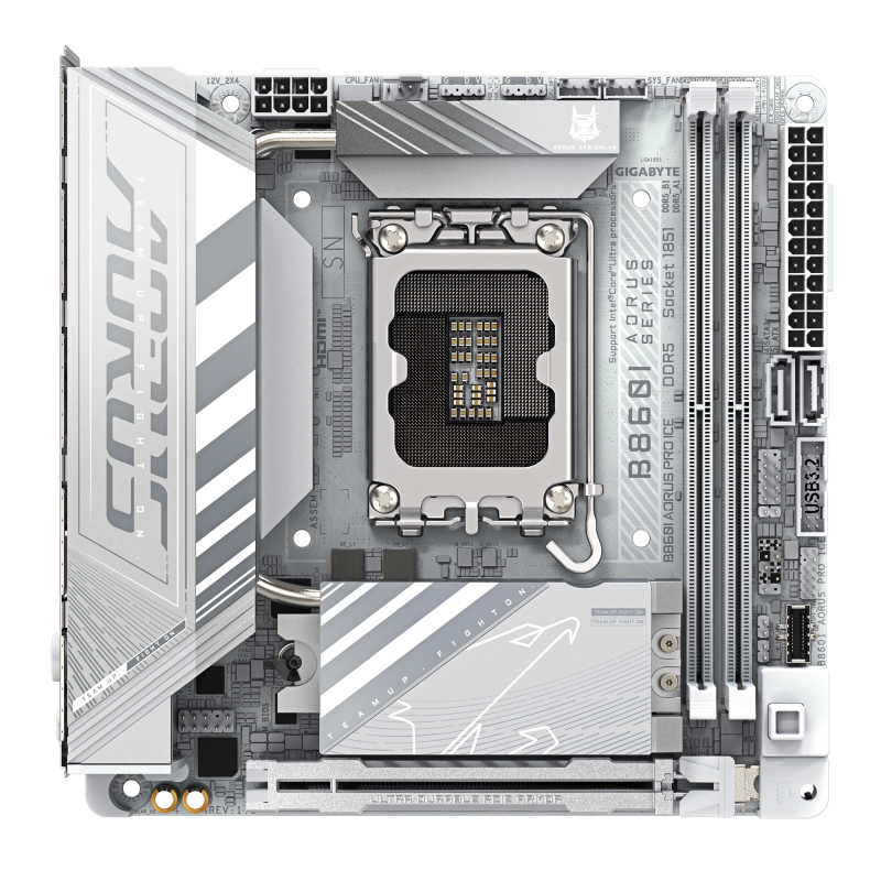 Gigabyte B860I AORUS PRO ICE | Processor family Intel | Processor socket LGA1851 | DDR5 | Supported hard disk drive interfaces SATA, M.2 | Number of SATA connectors 2