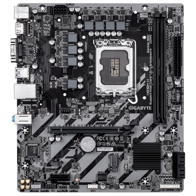 Gigabyte H810M H | Processor family Intel | Processor socket LGA1851 | DDR5 | Supported hard disk drive interfaces SATA, M.2 | Number of SATA connectors 4