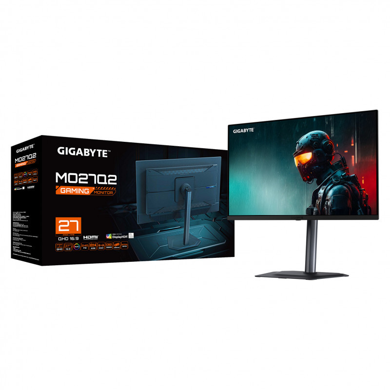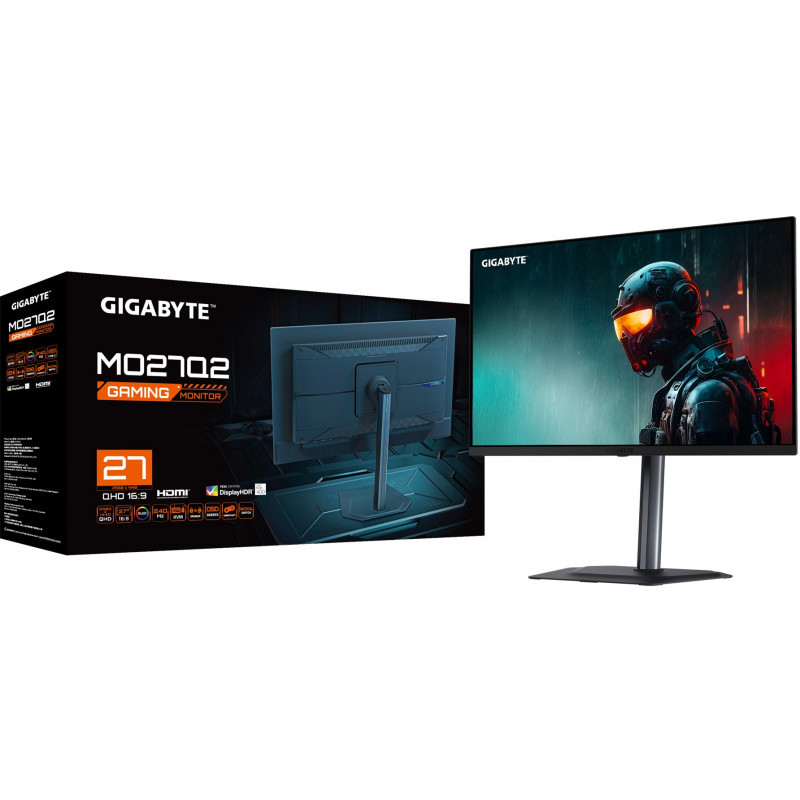 "GIGABYTE MO27Q2 27"" OLED QHD Gaming Monitor - 2560 x 1440, 240Hz, 0.03ms, 250 cd/m², Display HDR True Black 400, HDMI 2.1, Displayport 1.4. Display diagonal: 68.6 cm (27""), Display resolution: 2560 x 1440 pixels, HD type: Quad HD, Display technology: OLED, Response time: 0.03 ms, Native aspect ratio: 16:9, Viewing angle, horizontal: 178°, Viewing angle, vertical: 178°. Built-in speaker(s). Built-in USB hub. VESA mounting, Height adjustment. Product colour: Black"\n"Immerse yourself in gaming excellence with the GIGABYTE MO27Q2 Gaming Monitor and its captivating 27-inch QHD OLED display. Witness vibrant colors and deep contrasts as the OLED technology brings every pixel to life. With a remarkable 240Hz refresh rate and an ultra-responsive 0.03ms response time, enjoy unparalleled gaming fluidity. Elevate your gaming experience with the GIGABYTE MO27Q2, where the brilliance of OLED transforms every pixel into a vivid masterpiece, creating a visual spectacle that sets a new standard for gaming monitors. Boasting unique Tactical Switch and AI-based OLED care, it's designed for those who demand the best and refuse to settle."