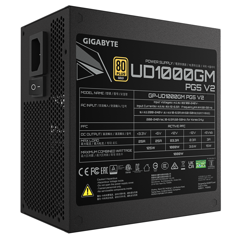 Gigabyte Power Supply, ATX 12V v3.1 | UD1000GM PG5 V2 | 1000 W