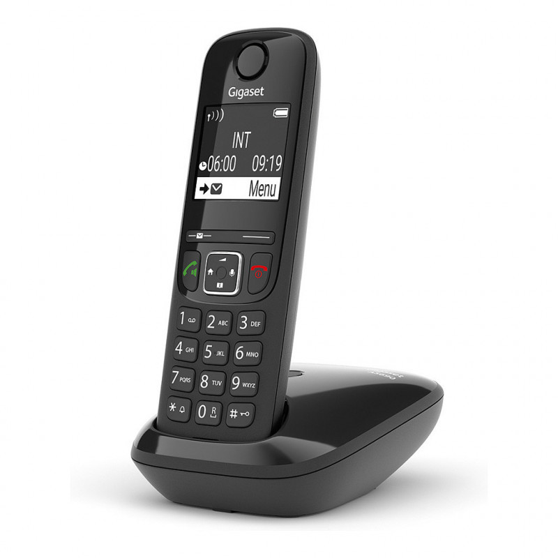 "Gigaset AS690. Type: Analog/DECT telephone, Handset type: Wireless handset. Speakerphone, Phonebook capacity: 100 entries. Caller ID. Display diagonal: 5.08 cm (2""). Product colour: Black. Number of handsets included: 1"\n"Reliable quality for everyday communication.