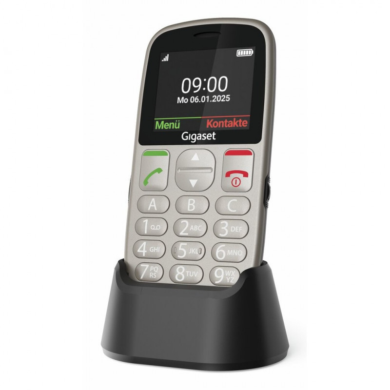 "Gigaset GL395. Form factor: Bar. SIM card capability: Single SIM. Display diagonal: 5.59 cm (2.2""), Display resolution: 220 x 176 pixels. Rear camera resolution (numeric): 0.3 MP. Bluetooth. Battery technology: Lithium-Ion (Li-Ion), Battery capacity: 800 mAh, Standby time (2G): 320 h. Weight: 90 g. Product colour: Grey"\n
