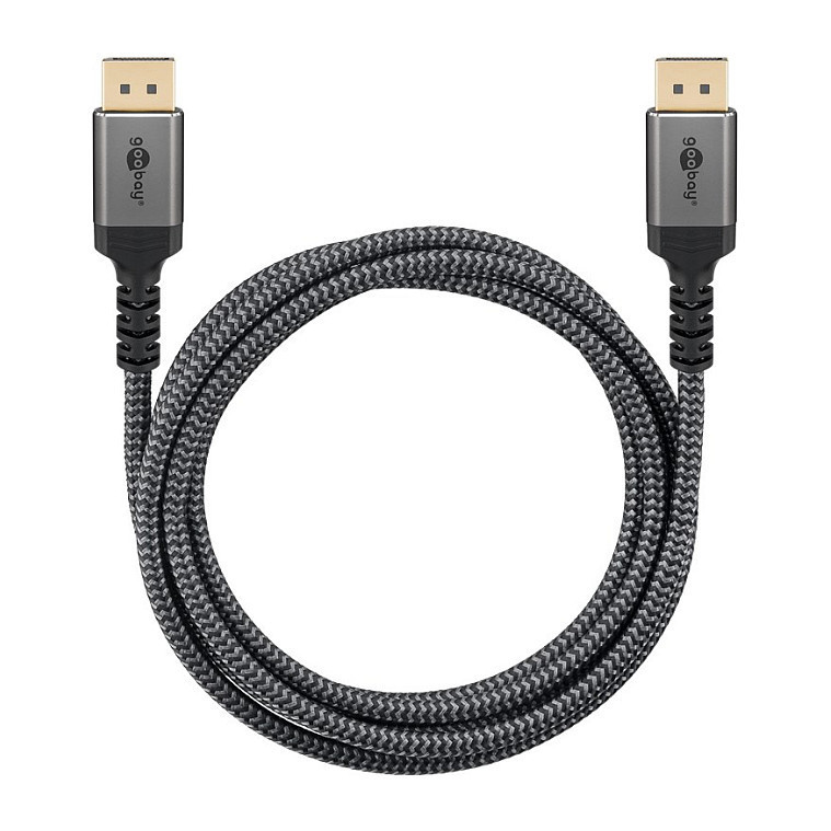 "Goobay 65267. Cable length: 5 m, Connector 1: DisplayPort, Connector 2: DisplayPort. Certification: CE, WEEE. Cable diameter: 5.5 mm. Package type: Polybag. Quantity per pack: 1 pc(s)"\n"The Goobay Plus series comes in a slim, elegant metal design in Sharkskin Grey. Equipped with the DisplayPort 1.4 standard, the cable provides a particularly high bandwidth - for smooth image playback without screen tearing or judder when gaming and a razor-sharp resolution with up to 8K."