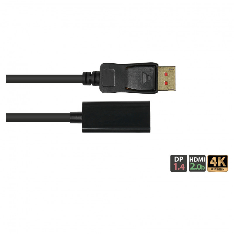 "Alcasa DP-AD09. Cable length: 0.2 m, Connector 1: DisplayPort, Connector 2: HDMI. Quantity per pack: 1 pc(s)"\n